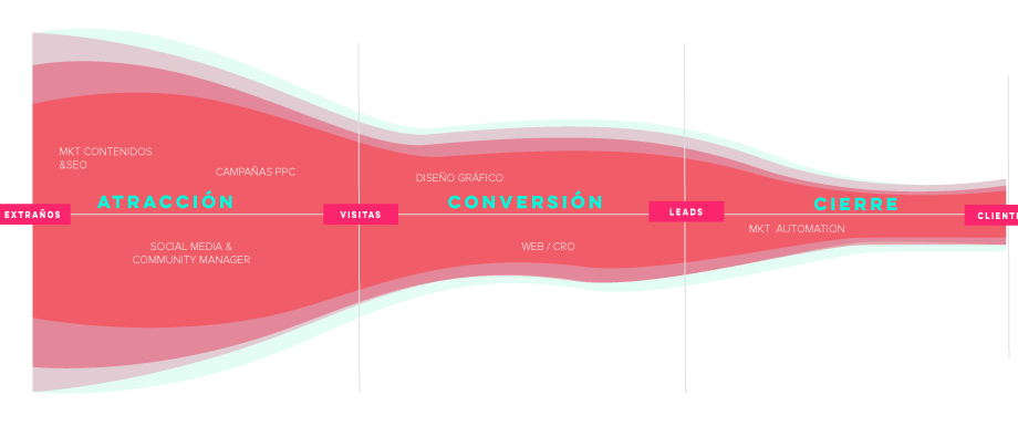 Implantamos un sistema global que genera oportunidades de negocio de forma recurrente y automatizada. Abarca las 3 principales fases del Inbound Marketing: Atracción, Conversión y Cierre.